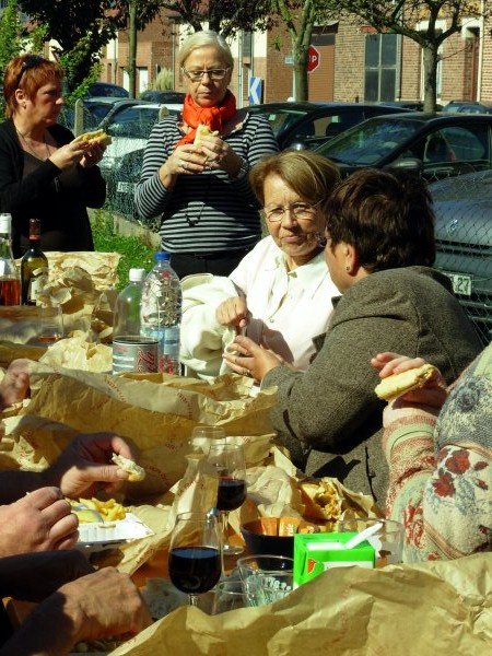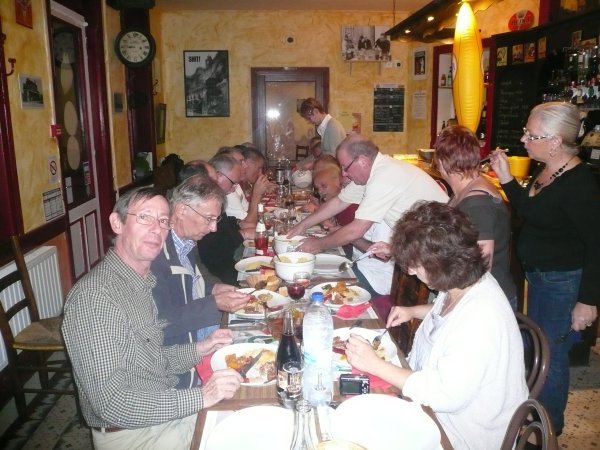 Nous nous retrouvons au « Cheval blanc », un restaurant typique du Nord où la moule est fraiche et la frite joyeuse dans une ambiance d'amitié grandissante.