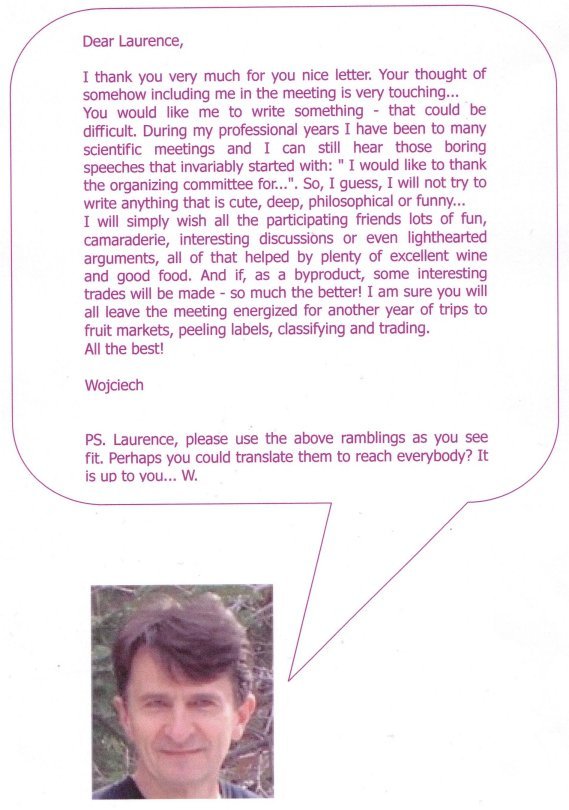 Etait excusé aussi Wojciech SLUZAREK, citoyen américain spécialiste des mangues, qui aurait bien voulu représenter son pays à cette rencontre car il se trouvait en Europe. Mais ce même week-end il était invité au mariage d'un de ses proches parents sur sa terre natale de Pologne.