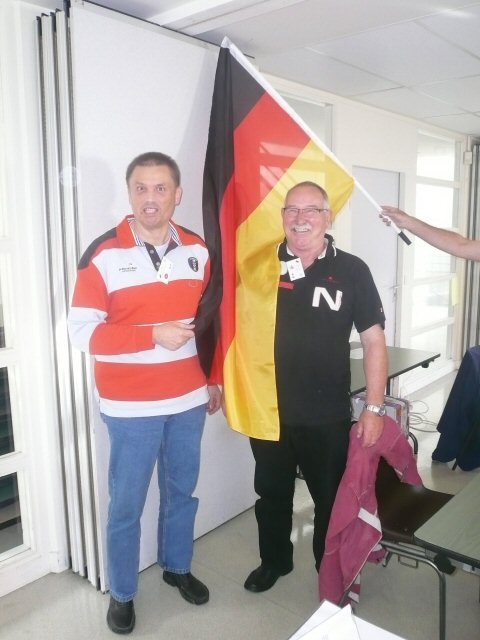 A 14 heures la rencontre est officiellement ouverte avec le traditionnel discours bilingue, Didier en français et Gabriel qui maîtrise parfaitement la langue, en anglais. Dans le même temps Laurence épingle les badges et dans cet exercice périlleux aucun blessé n'est à déplorer.