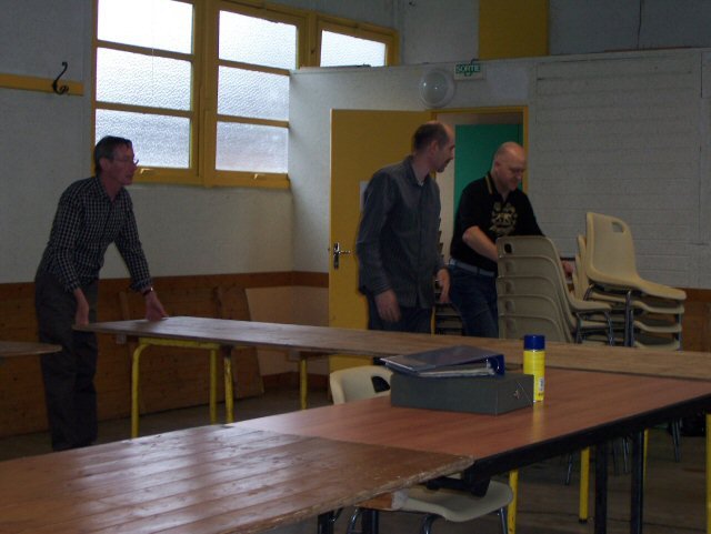 nitialement la salle de réunion ne devait ouvrir ses portes que vers 9 heures. Hors à 7h45 Jean-François Girard et Rony Wouters trépignaient déjà et l'entrée de la salle fut libérée. Ils furent à leur tour rejoint par toute l'assemblée qui reprit rapidement les bonnes habitudes de la veille.