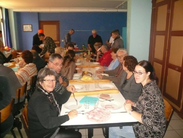 A midi, le repas fut tout aussi joyeux et animé que celui du samedi soir.