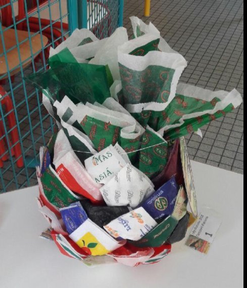 - 1er prix Coralie DETHIERE pour son carnaval ananas constitué de feuille de papiers de fruits pliées