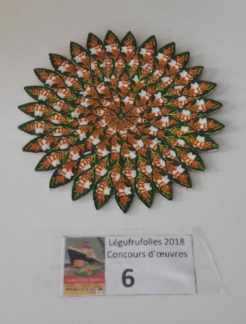 - 2ème prix Jean-Gabriel GIRAUDEAU pour un dessous de plat nommé le soleil de Lulu (nom d'une étiquette d'agrume en forme de feuille)
