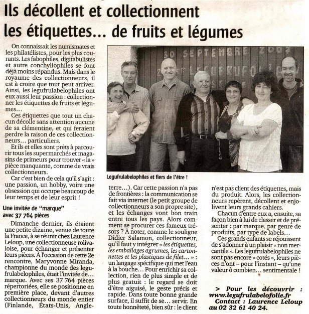 • Maryvonne est championne du monde en titre mais le danger est réel car Ludmila, collectionneuse tchèque et vice-championne du monde, la talonne à quelques centaines d'étiquettes. Maryvonne put augmenter son score grâce à nous, ce qui me fait dire que notre site est dorénavant estampillé « fournisseur officiel de la championne du monde ». La pérénité de cette première place est donc déclarée « cause nationale » légufru.