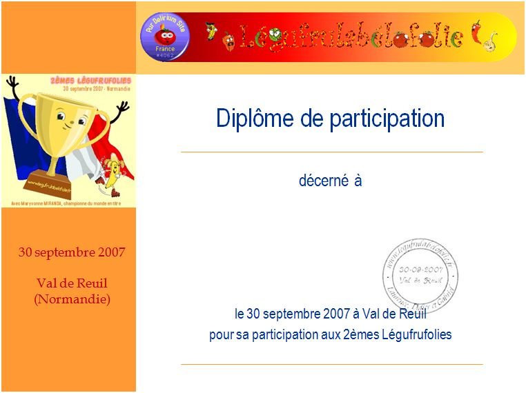 Pendant plusieurs semaines la page d'accueil du site vous a informé de l'organisation des deuxièmes légufrufolies en Normandie le dimanche 30 septembre 2007 sous la houlette des trois administrateurs du site Laurence, Gabriel et Didier.