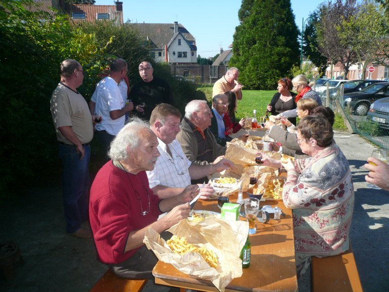 Le début officiel de la réunion avait été fixé à 14 heures, heure du Nord. Pourtant le premier collectionneur déboulait à 9 heures 40, suivi régulièrement par d'autres affamés. Il fallut donc organiser un repas improvisé pour le midi avec le concours exceptionnel de la baraque à frites de Seclin.