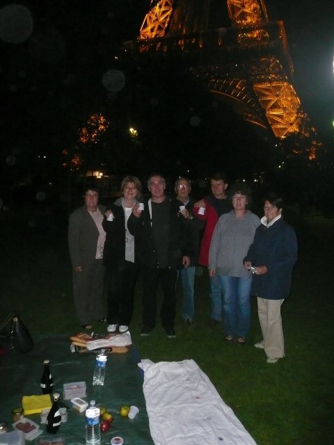 A 18 heures les premiers congressistes attendus sont tous arrivés (Xavier et Elvira de Belgique, Maryvonne et Marcel) et sur l'initiative de Laurence nous partons sur l'esplanade du Champs de Mars pour un pique-nique sous les feux de la Tour Eiffel, rejoints un peu plus tard par Gabriel qui arrive de Niort.