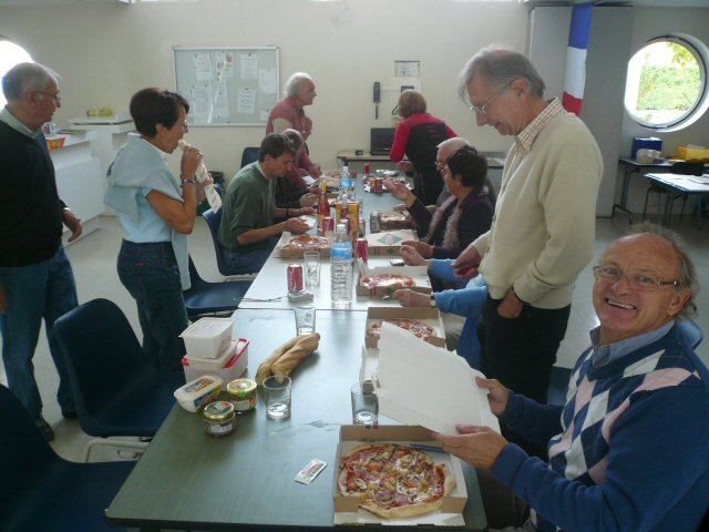 A 11 heures c'est l'arrivée ininterrompue des inscrits dans une grande démonstration de joie communicative. Un repas est organisé dans un coin de la salle avec le concours de la pizzeria locale.