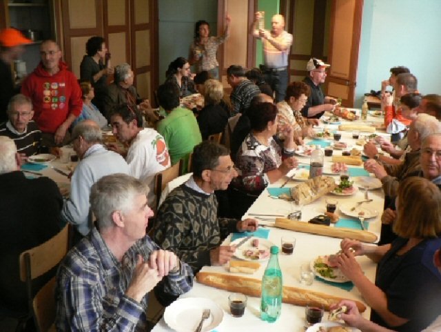 A midi, le repas fut tout aussi joyeux et animé que celui du samedi soir.